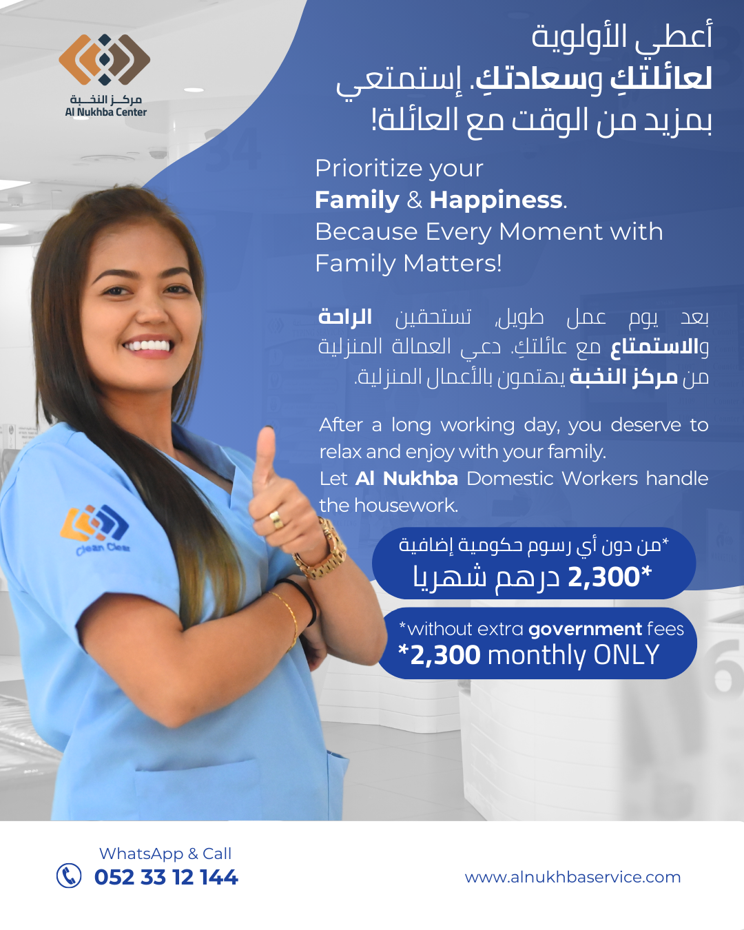 After a long working day, you deserve to relax and enjoy with your family. Let Al Nukhba Domestic Workers handle the housework.