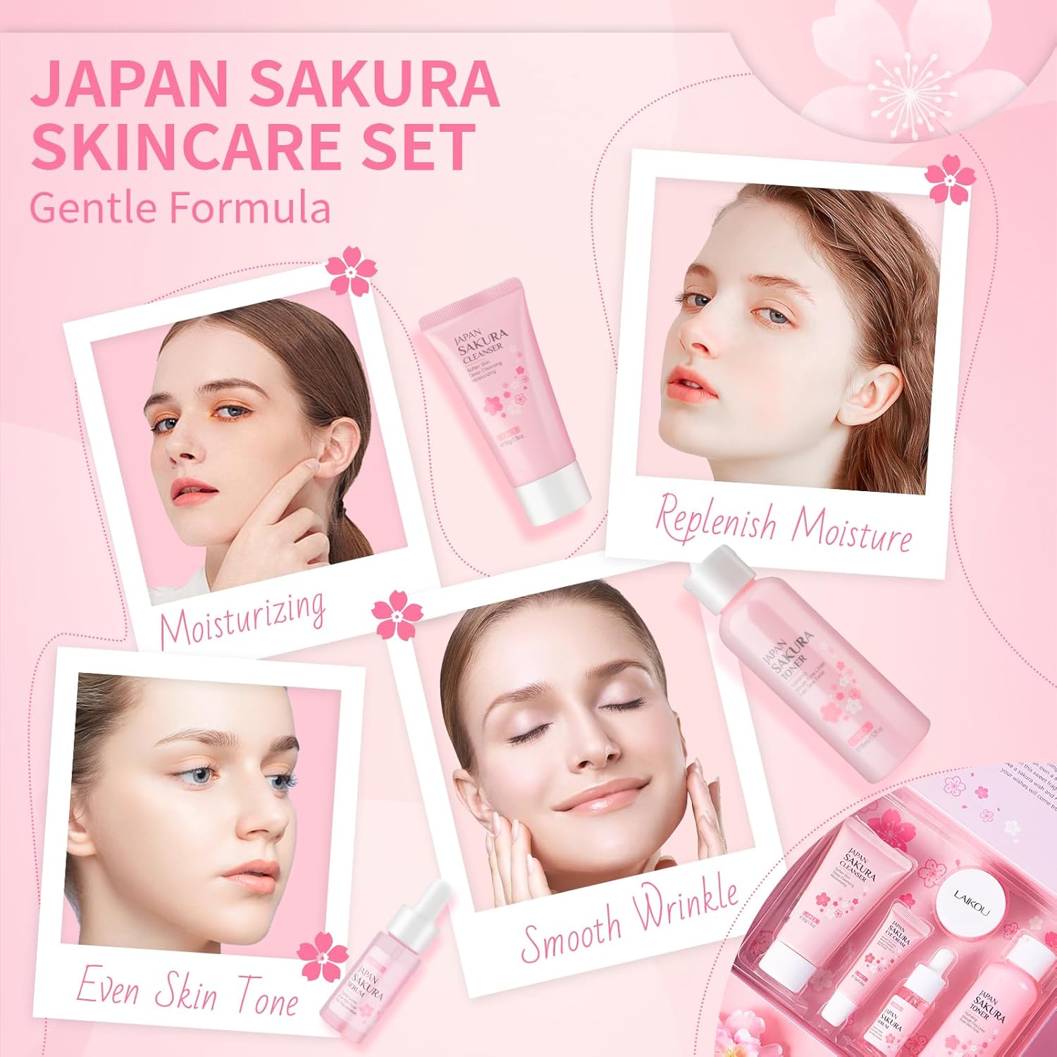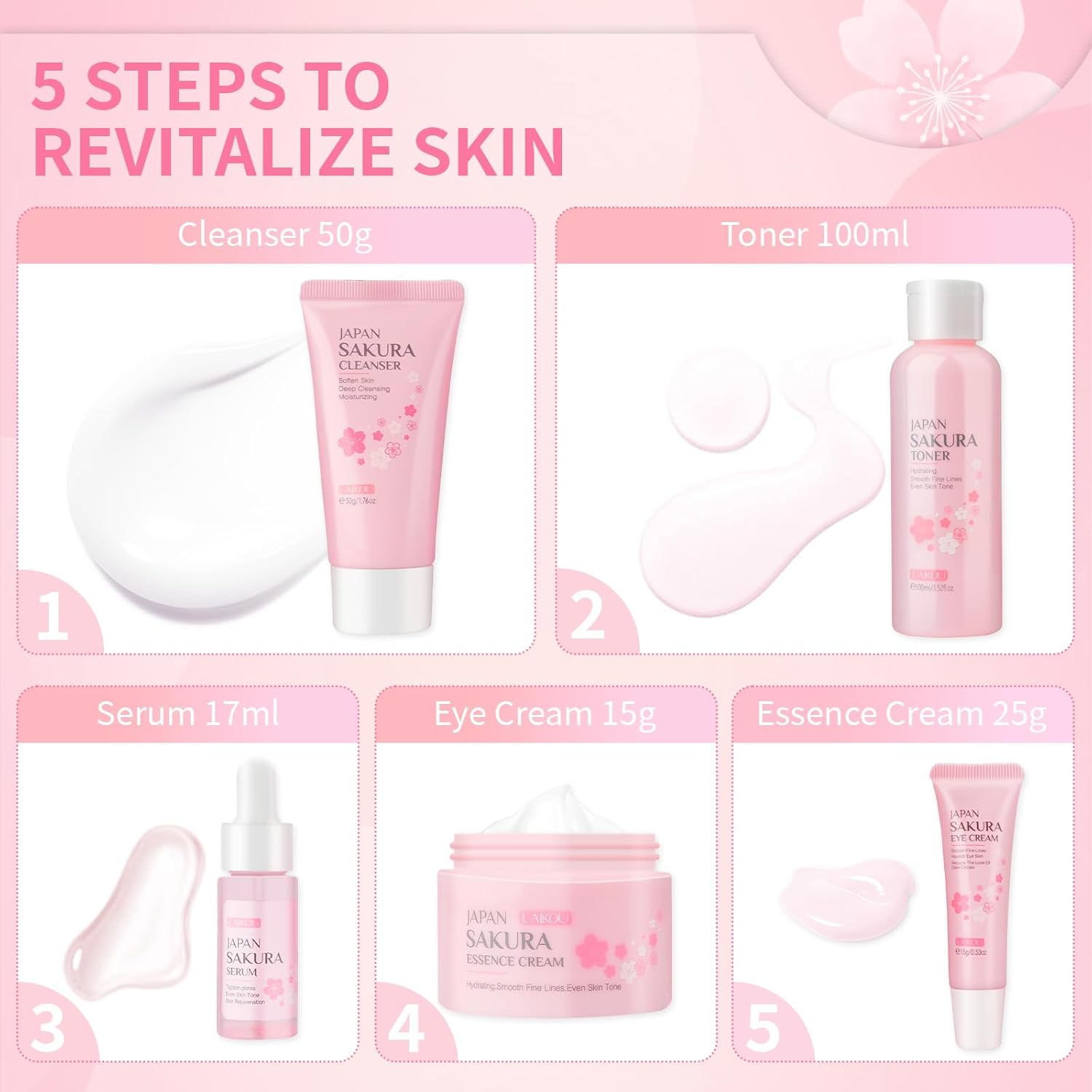 • تتكون مجموعة ساكورا اليابانية من عدة منتجات متكاملة للعناية اليومية بالبشرة، والتي تشمل: