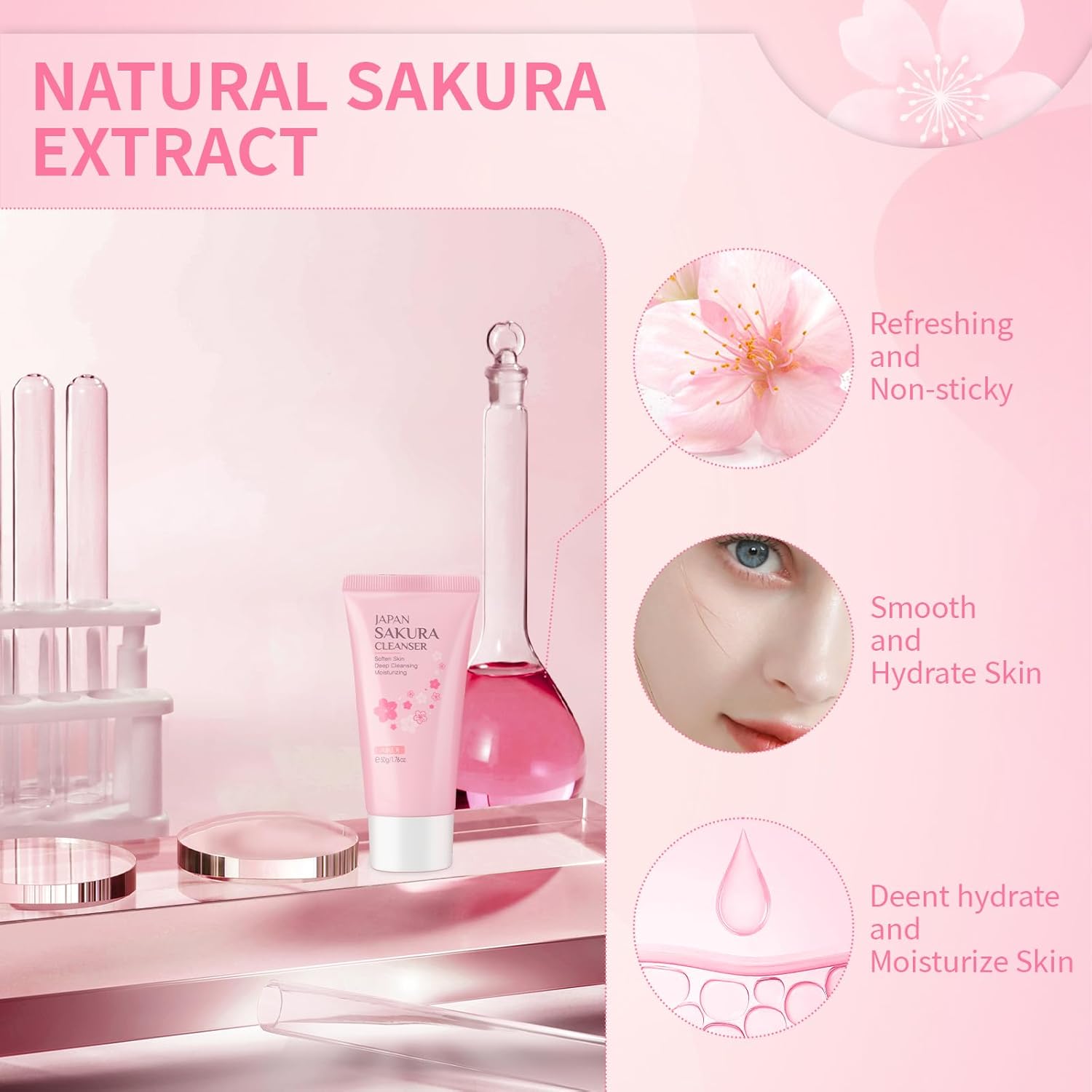 • غسول الوجه ساكورا: لتنظيف البشرة بعمق وإزالة الشوائب والدهون الزائدة مع الحفاظ على رطوبة البشرة