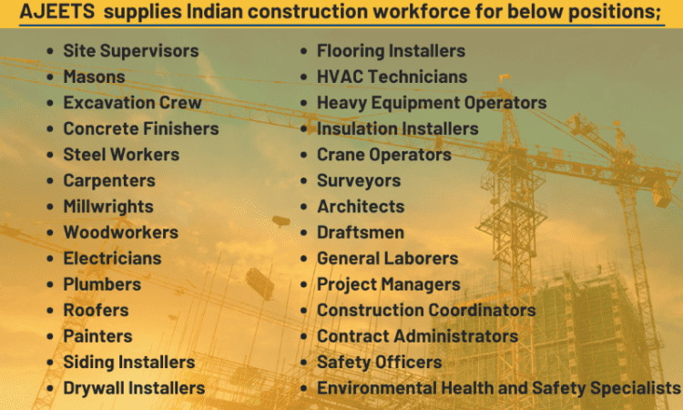 AJEETS is here to supply you with highly qualified construction workers for any project, in Middle East countries! We are a leading construction recruitment company that hires skilled Nepali workers such as CAD technician, Environmental engineer, Facilities manager, Financial manager, Further education teacher, Geotechnical engineer, Management consultant, Planning and development surveyor, Town planner, Urban designer, Project Engineers, Estimators, Land Surveyors, QA/QC Engineers, Foremen, Inspectors, Painters, Electricians, Mechanics, HVAC Technicians, Masons, Carpenters, Steel Fixers, Welders, Construction Laborers, Technicians, Operators, Building Maintenance workers, Plumber, Shuttering Carpenter, Draftsman, Duct man, Roofer, Painter, and Tiles Fitter, Arbitrator, Building control surveyor, Building services engineer, Building surveyor, Construction manager, Estates manager, Estimator, Fire risk assessor, Quantity surveyor, Site engineer, Sustainability consultant, Architectural technologist, etc.
