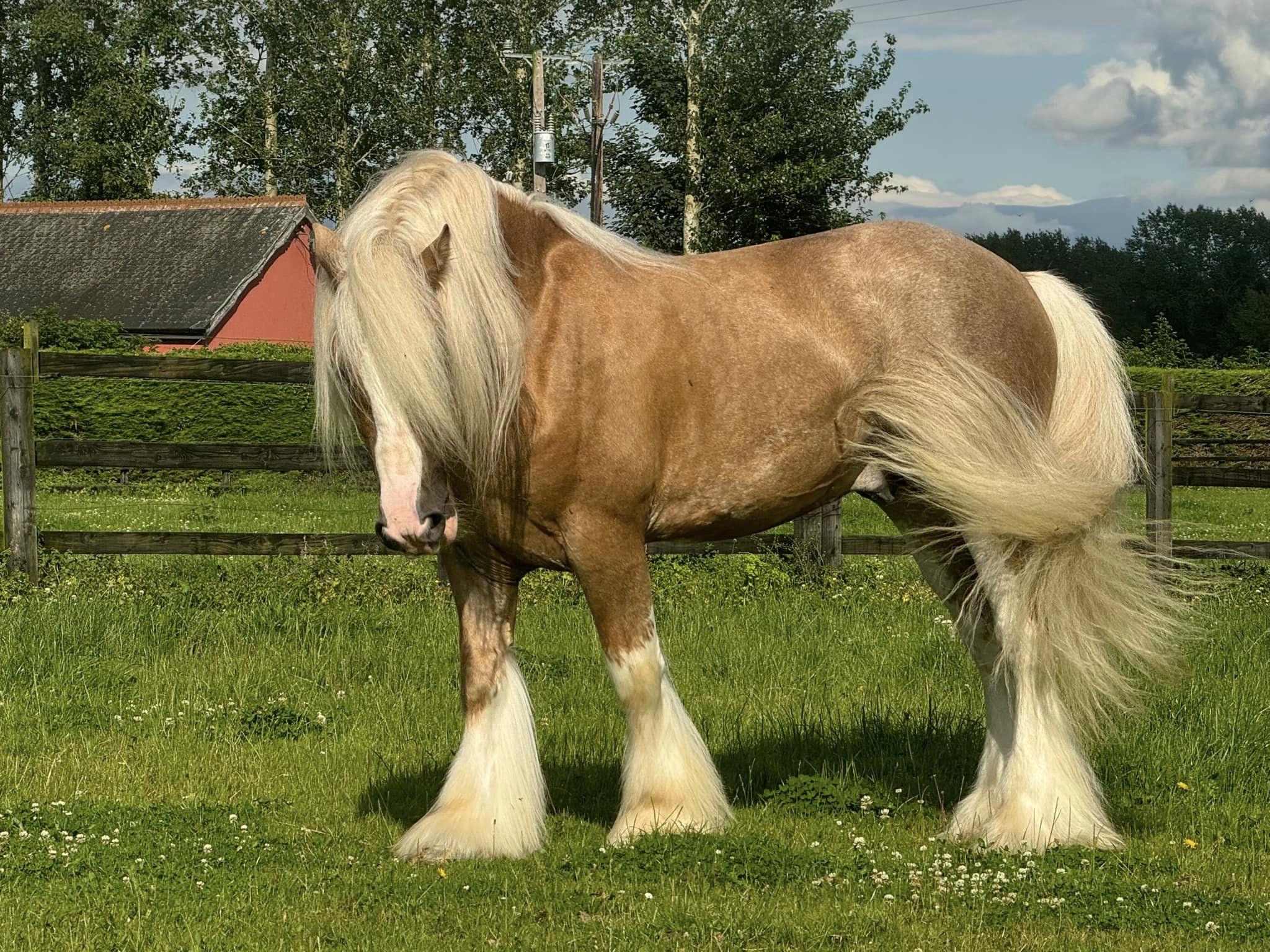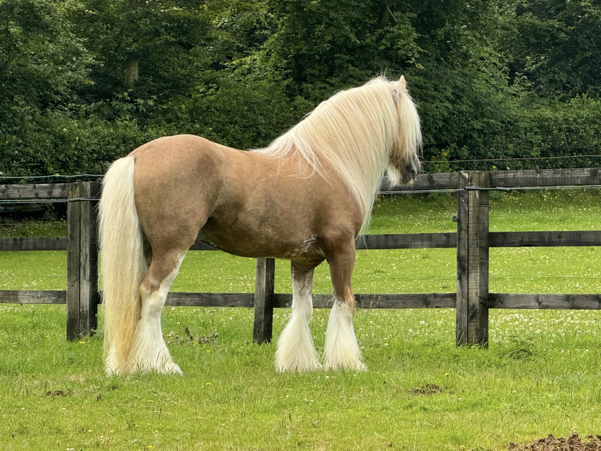 Golden Moone is an seven year old stallion. He is passed as a Main Elite stallion with the Irish Cob Society. He stands at one fifty five cm. The right home is my primary concern, but I imagine he may likely fetch somewhere.he picked up everything quickly, and was pretty unfazed as he conquered the obstacle course with ease!He runs to the gate to meet me, floats easily, and is well behaved for the farrier and vet. He is extremely chilled, and completely non-spooky.