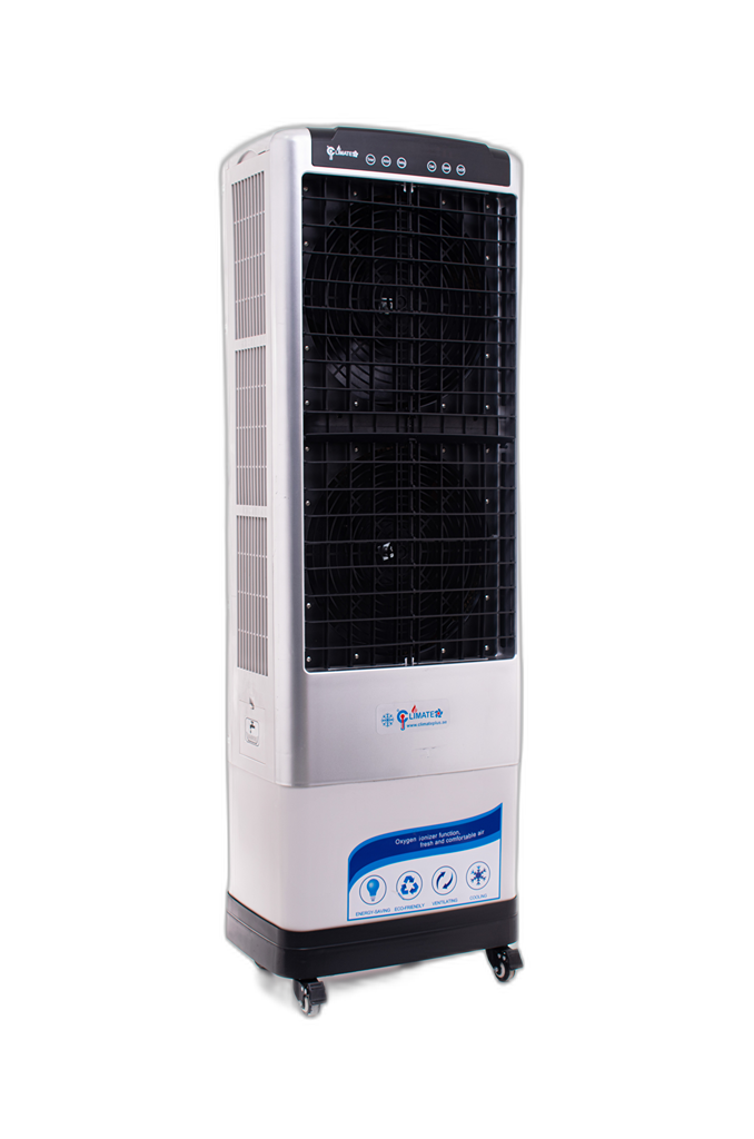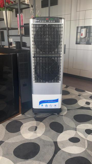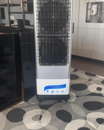 The advantage of this cooling machine over the other 8000m3/h outdoor coolers is the slim design. With 50cm width only, It could be fitted in tight patio corners or between furniture. The 7500 good air flow compensated by about 1.5m tall design powered by 2 axial fans.