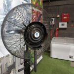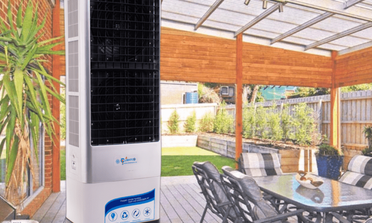 The advantage of this cooling machine over the other 8000m3/h outdoor coolers is the slim design. With 50cm width only, It could be fitted in tight patio corners or between furniture. The 7500 good air flow compensated by about 1.5m tall design powered by 2 axial fans.
