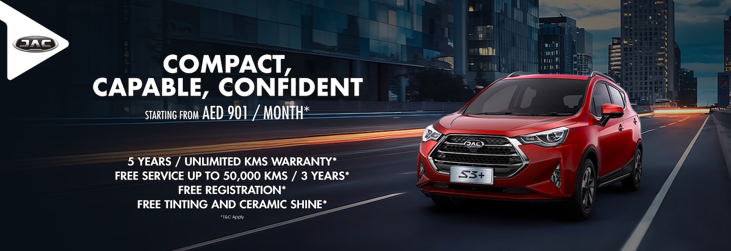 Take advantage of this limited-time offer to own the JAC S3 Plus at an exceptional rate. Visit JAC UAE – Al Habtoor Motors showrooms in the UAE to test drive this impressive model, explore its features, and learn more about the terms and conditions. With these exclusive benefits, driving the JAC S3 Plus has never been more affordable or convenient!