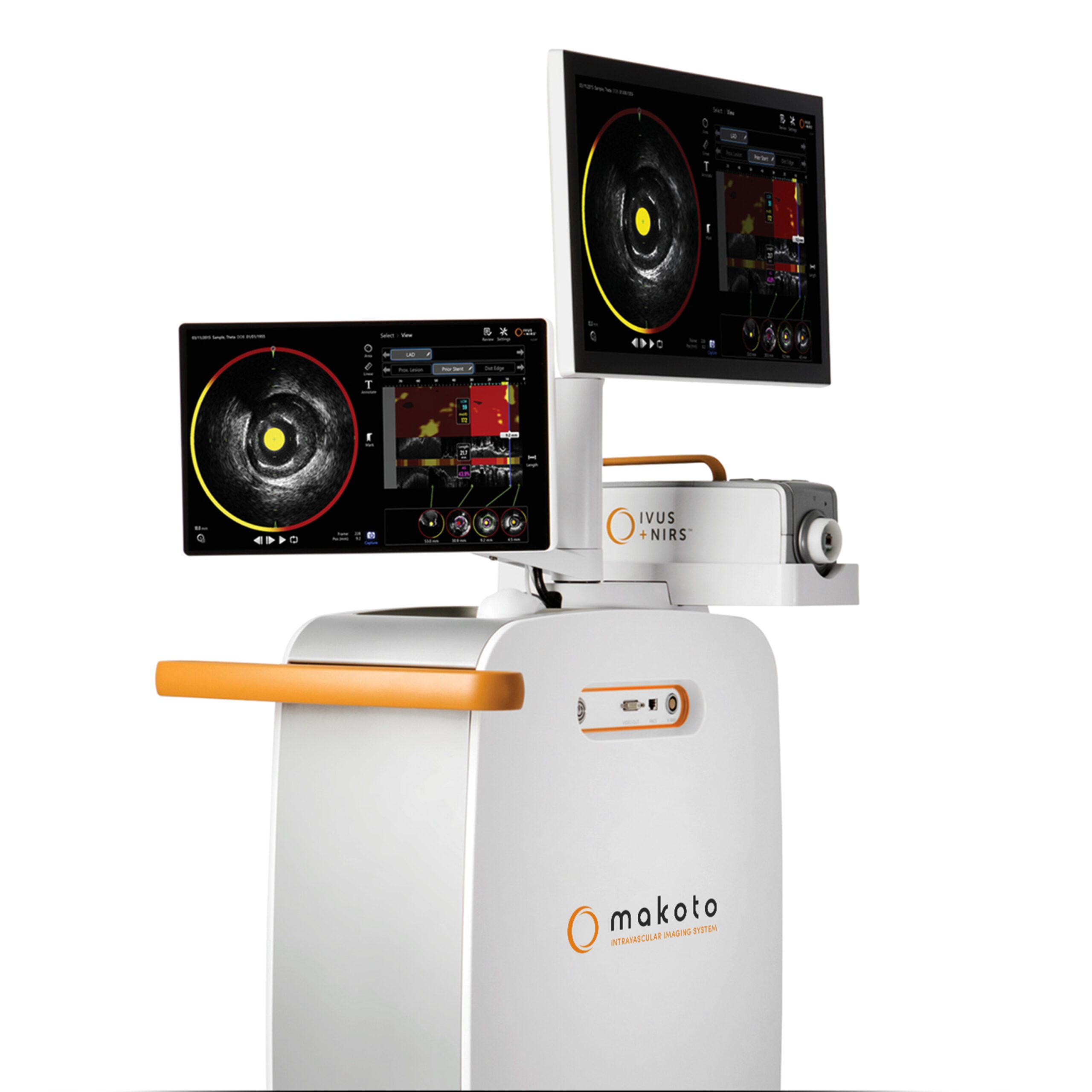 The Makoto Intravascular Imaging System, with accompanying Dualpro IVUS+NIRS Catheter, is the only imaging system on the market today that utilizes not just intravascular ultrasound (IVUS) but also Near-Infrared Spectroscopy (NIRS) to help clinicians visualize vessel structure and gain valuable insights into plaque composition. Our revolutionary technology is the only FDA-cleared imaging technology indicated for the detection of Lipid Core