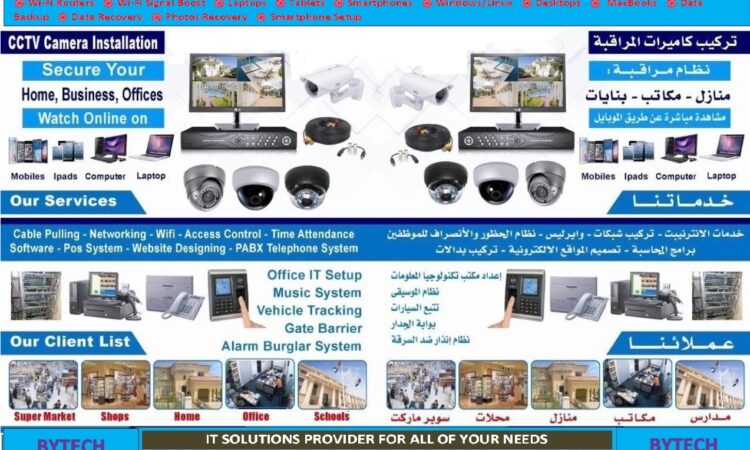 • تأمين منزلك أو مكتبك من خلال تركيب وصيانة كاميرات المراقبة بشكل احترافي.