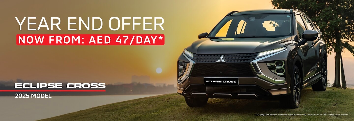 Drive the sleek Mitsubishi Eclipse Cross 2025 for only AED 47 per day with Al Habtoor Motors in the UAE. This stunning crossover is designed to elevate your driving experience with its sporty look, powerful performance, and cutting-edge technology.