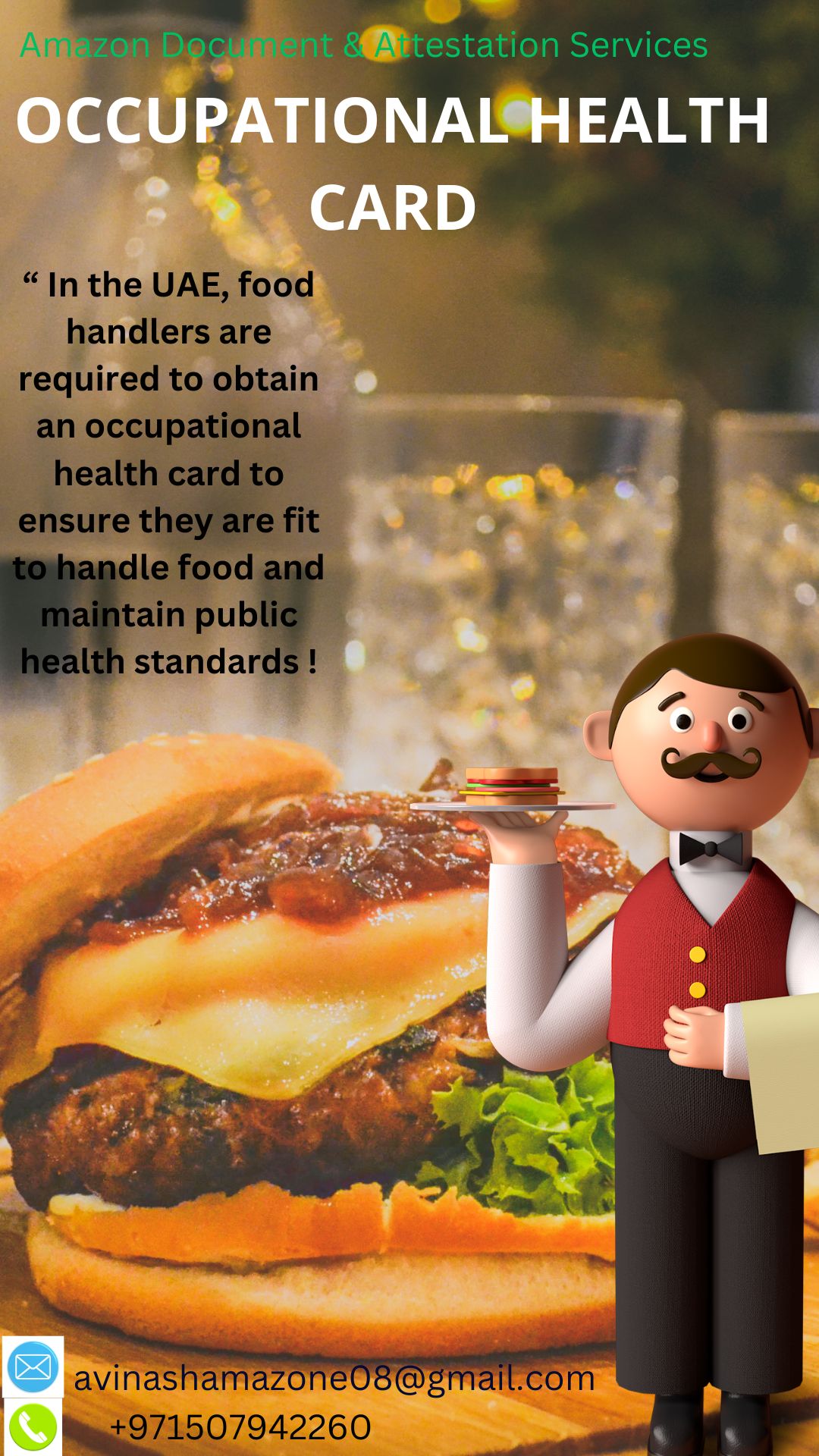 In the UAE, food handlers are required to obtain an occupational health card to ensure they are fit to handle food and maintain public health standards. The process typically involves several steps, including medical examinations and specific requirements for documentation. Here’s a general overview of the process: