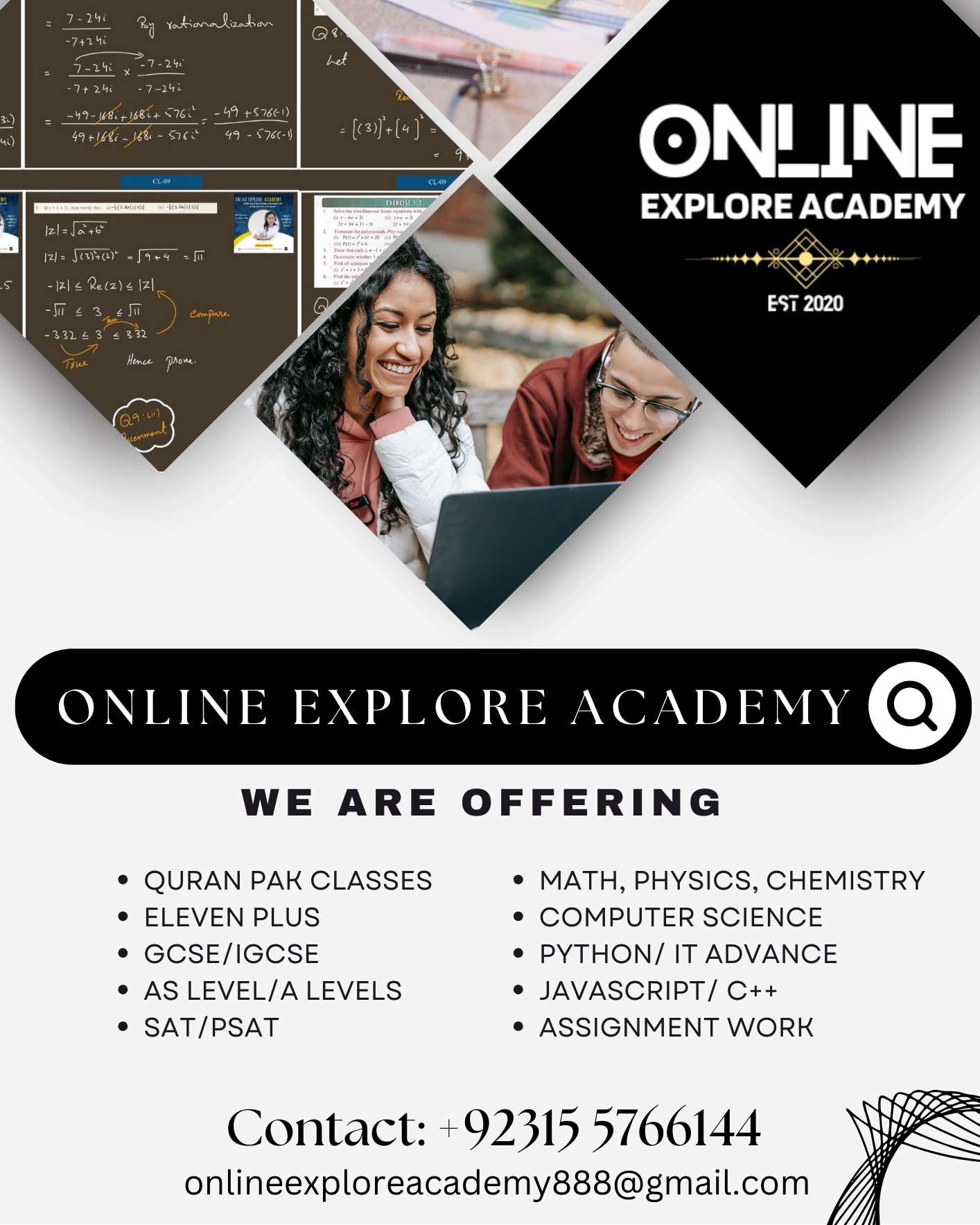 Online Explore Academy offering online tutoring services for all grades of students and covering almost all academic students.
