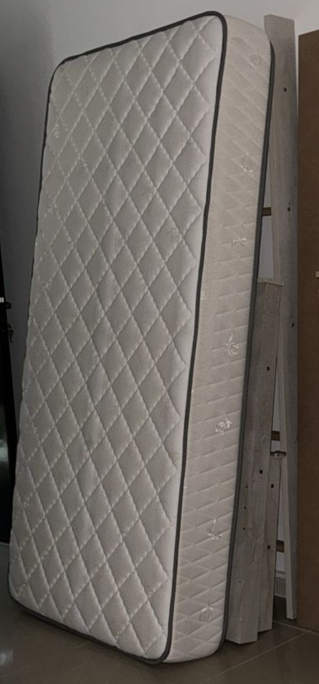 Pan Home Bed frame with 1 side table and mattress are in very good condition. Only a small chip in the frame but not damaged. Price is fixed. Please SEND ONLY WHATSAPP on the give number. ONLY WHATSAPP AND NO CALLS.