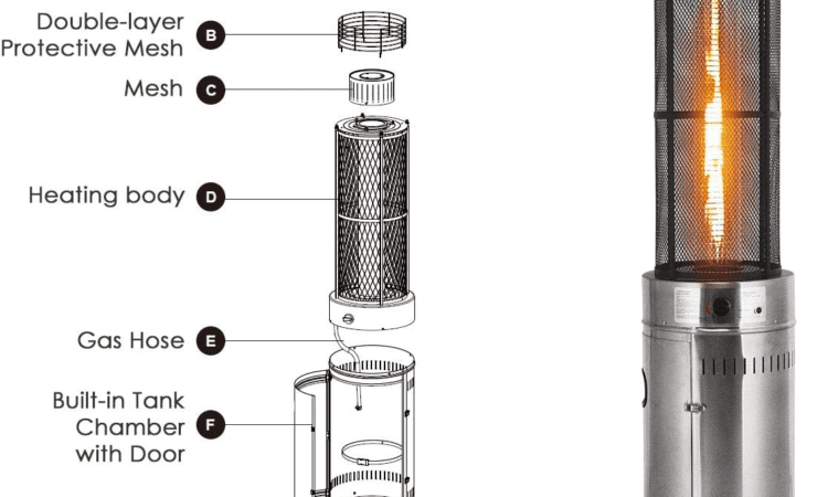 360° All-Direction Heating: With 40,000 BTU heat output and 10ft spacious heating range, this patio propane heater can instantly drive away your coldness, enabling you to relax or entertain with maximum warmness outdoors. The cylindrical design allows for 360° all-direction heating, getting rid of coolness in every corner.