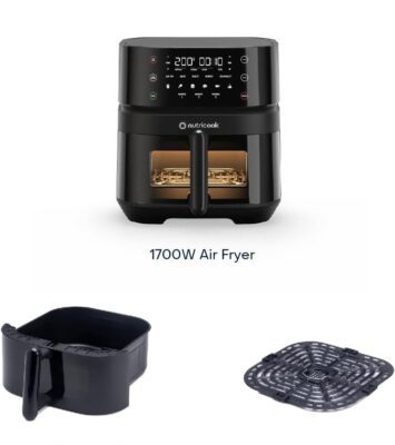 Nutricook Air Fryer 3 Vision with Clear Window and Internal Light , 5.7L, Air Fry, Roast, Bake, Dehydrate & Reheat, 6 Presets, AF357V, Black, 1700 Watts, 2 Years limited Warranty
