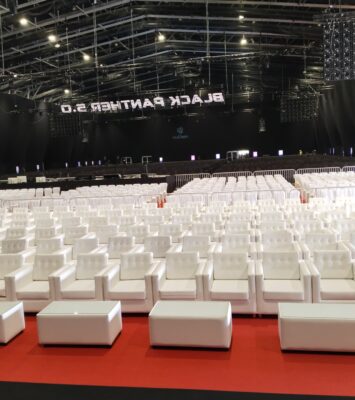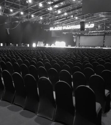 Qamar Event Rentals offer banquet chairs with black and white spandex covers for rent in Dubai, Abu Dhabi, Sharjah,...