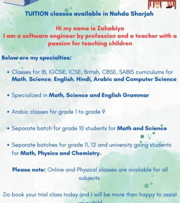 TUITION classes available in *Nahda Sharjah*(Both online (one to one) and face to face) Taking Classes for *IB, IGCSE,...