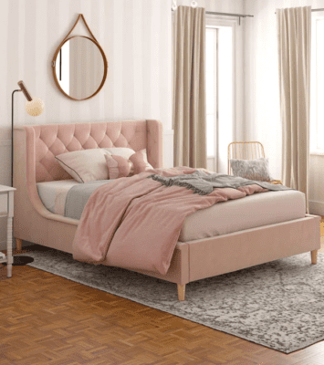 Full Platform Headboard Kid’s Bed Premium Velvet Fabric Bed